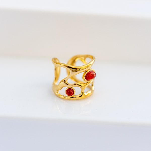 Aller au contenuBague plaqué or en acier inoxydable sertie d’une pierre d’agate rouge.