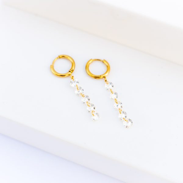 Boucles longues en acier inoxydable, avec 5 pierres de cristal.
