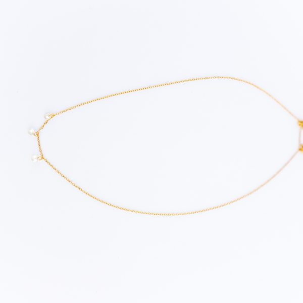 Collier chaine plaqué or en acier inoxydable, assortie de 3 perles de cristal.