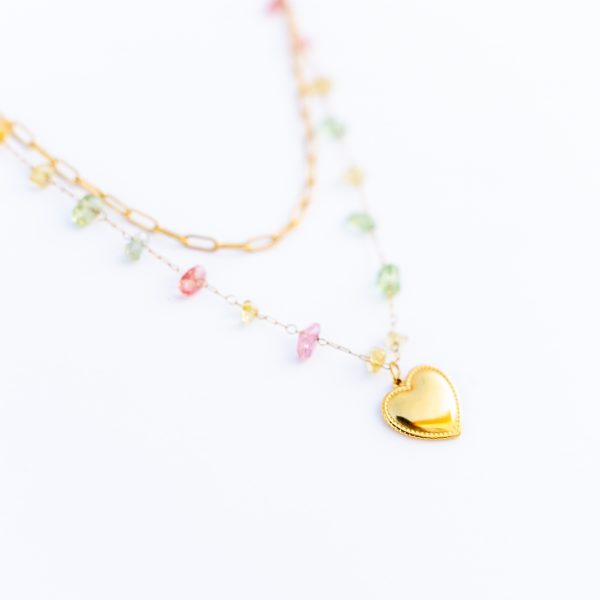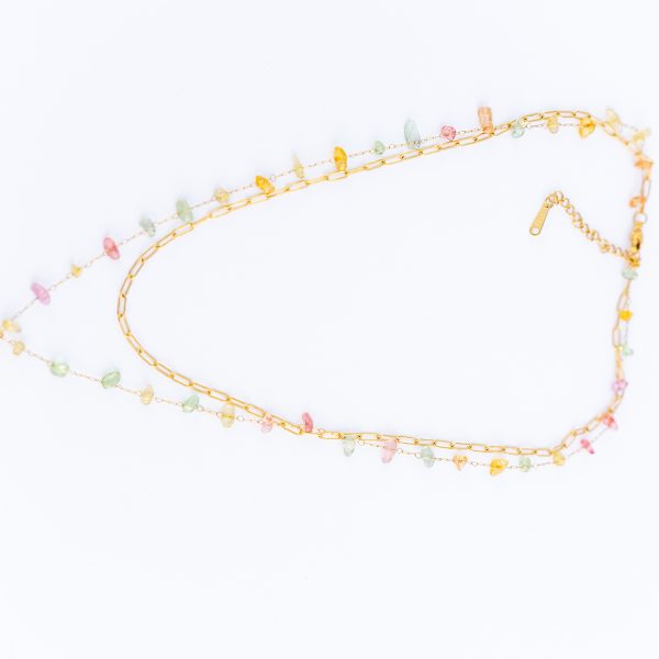 Aller au contenuCollier double chaine en acier inoxydable plaqué or.