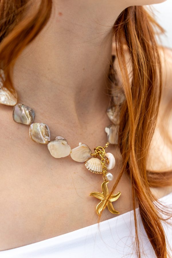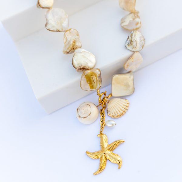 Aller au contenuCollier en acier inoxydable plaqué or dans le thème “océan”.
